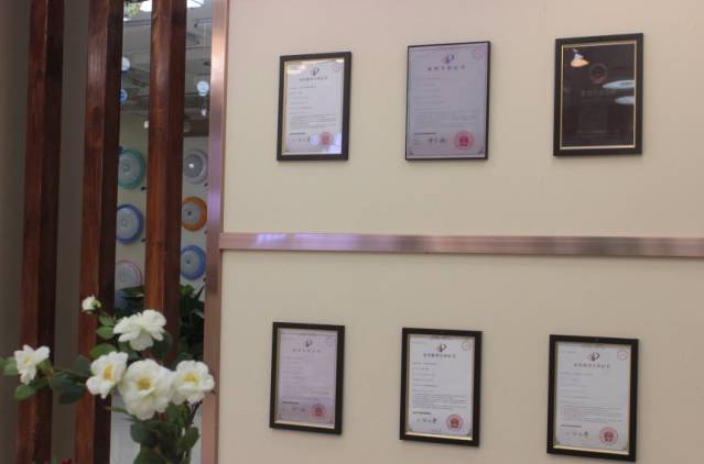 ▲华泰照明复合展厅产品新型专利证书展示墙实拍图